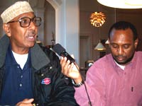 Information officer Faisal Dahir Nur (on the right) from the Somali League in Finland is interviewing Essa Hassan Ran, former basket-ball player from Somalia's international team, now living in Danmark.