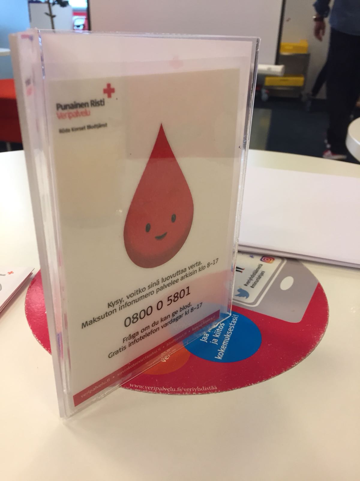 Aamupalatilaisuuden päätyttyä tiedottajamme otti härkää sarvista ja kävi luovuttamassa verta. Verenluovutuskampanjaan voi osallistua kuka tahansa, joka kokee auttamisen ilokseen. Muista mainita luovutuspaikan henkilökunnalle ilmoittautumisen yhteydessä, että kuulut VeriRyhmään SSL, jotta voit osallistua leffalippujen arvontaan!